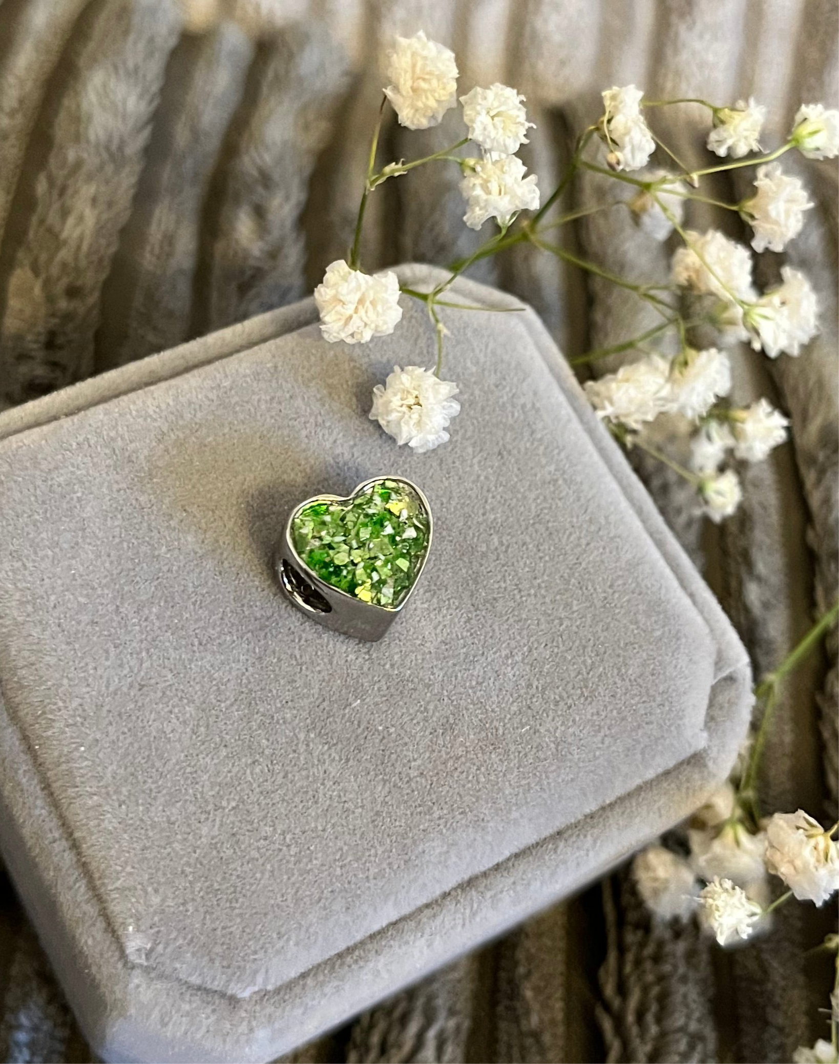 Cherish your most precious memories with this elegant sterling silver sweetheart charm, designed to fit Pandora-style bracelets. One side a beautifully crafted heart shaped keepsake stone, the other side fully decorated in sparkling cubic zirconias of your colour choice for a timeless, radiant finish.