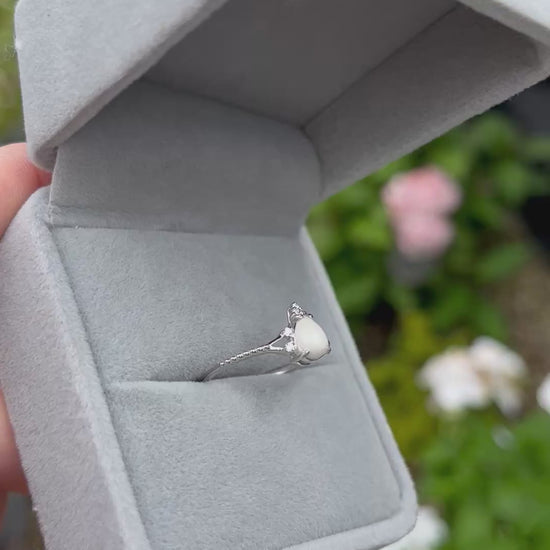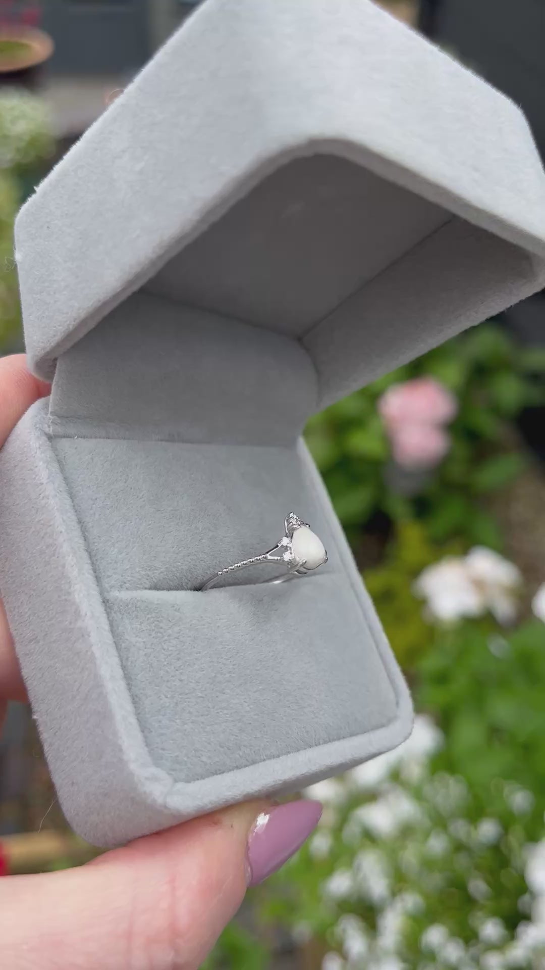 Understated beauty with a timeless touch — The Elegance Ring features a 5x7mm pear-shaped keepsake stone that takes centre stage, accented by delicately placed cubic zirconias that add just the right amount of sparkle without overpowering its sentiment.