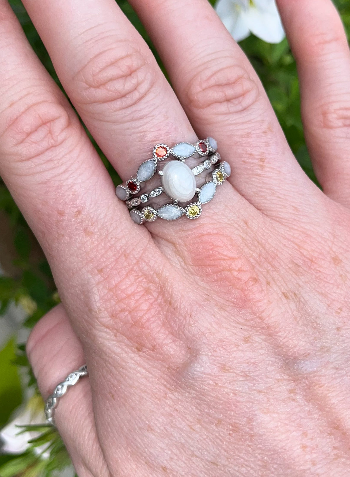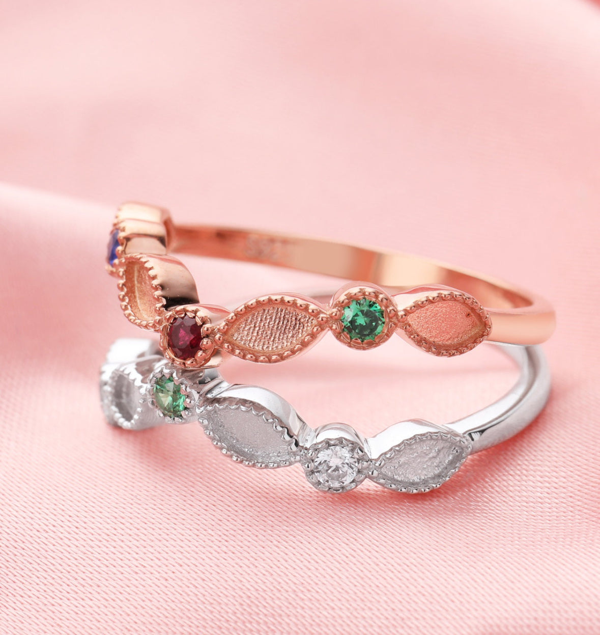 Please add your birthstone choices in your order notes at checkout. If no birthstone is specified, it will be made with clear gemstones. 3 different birthstones are allowed in this setting.