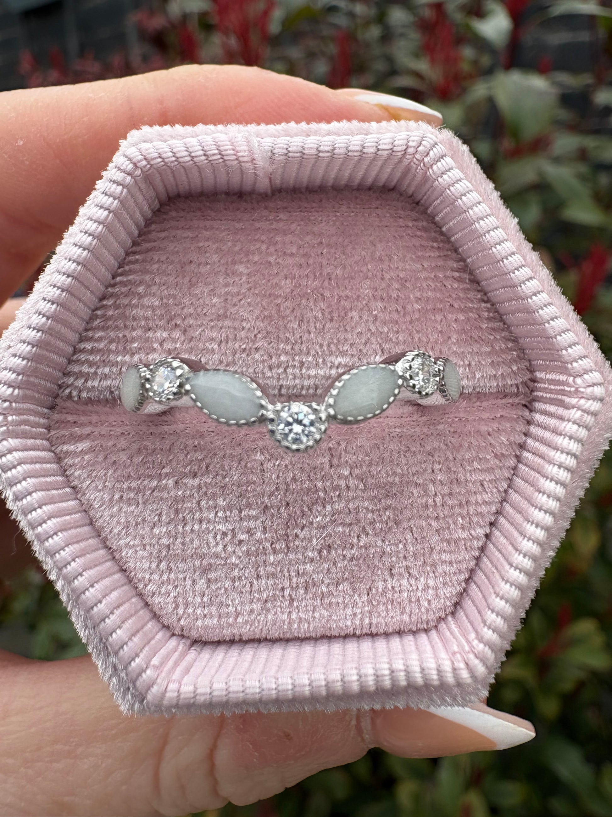 A beautifully handcrafted symbol of everlasting love and cherished memories. This elegant eternity ring is made from Sterling Silver and features alternating keepsake stones and your choice of cubic zirconia birthstone.